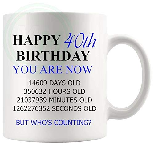 40th Birthday Novelty Gift Mug Blue Lettering is the perfect funny gift for a 40th Birthday. Ideal when you want to give her something a little different.
