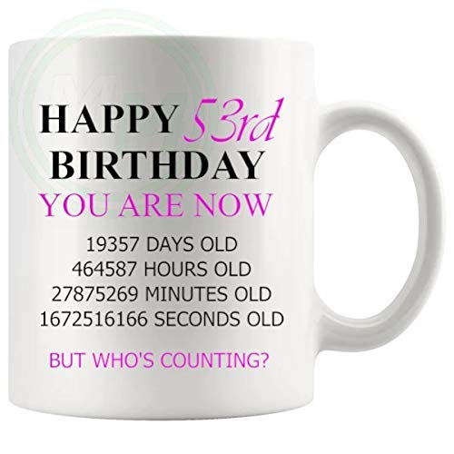 53rd Birthday Novelty Gift Mug Pink Lettering is the perfect funny gift for a 53rd Birthday. Ideal when you want to give her something a little different.
