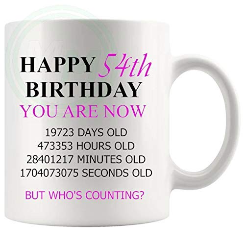 54th Birthday Novelty Gift Mug Pink Lettering is the perfect funny gift for a 54th Birthday. Ideal when you want to give her something a little different.