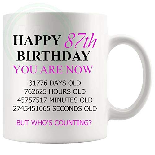 87th Birthday Novelty Gift Mug Pink Lettering is the perfect funny gift for a 87th Birthday. Ideal when you want to give her something a little different.