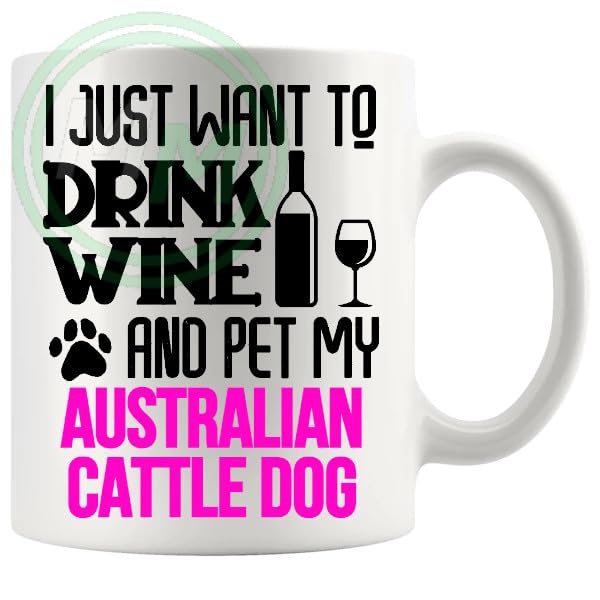 The Drink Wine And Pet My Australian Cattle Dog is the perfect funny gift for the dog lover, in particular the Australian Cattle Dog owner you know. The full text reads “I Just Want To Drink Wine And Pet My Australian Cattle Dog”