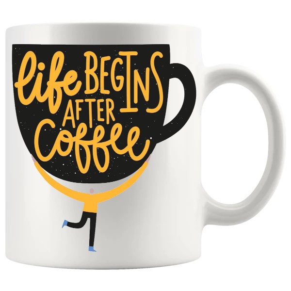 Our novelty mug design, Life Begins After Coffee, is the ideal gift for any coffee lover! Give them a present that they will use every day.